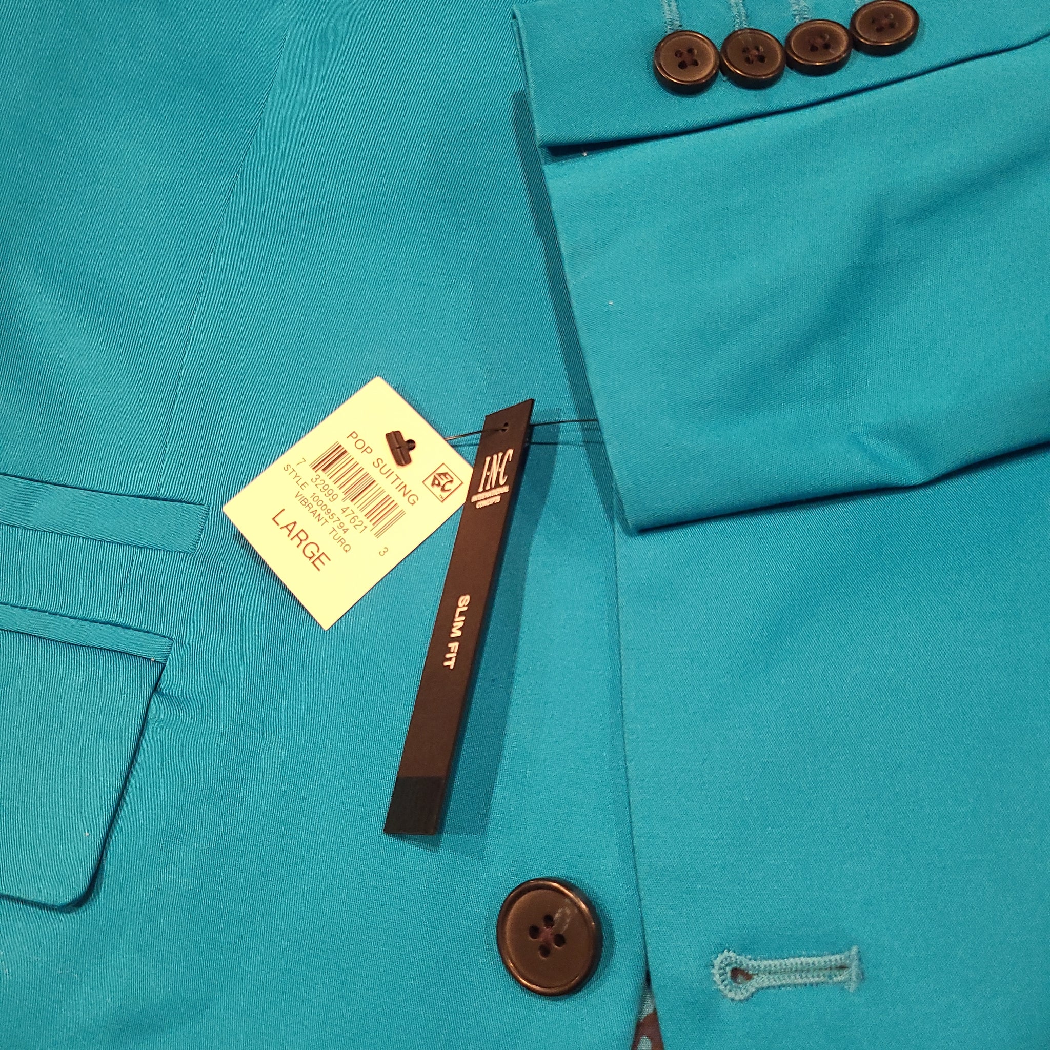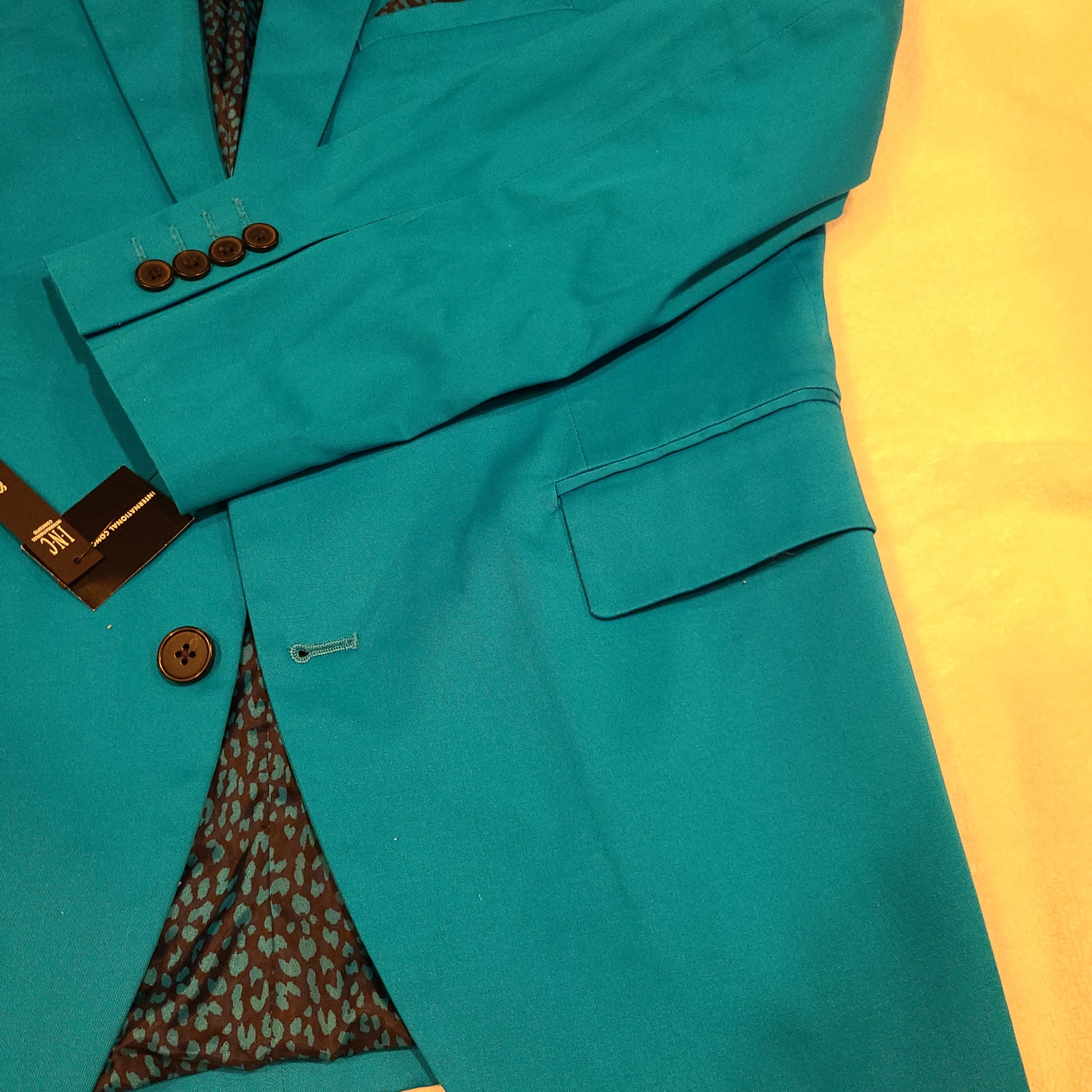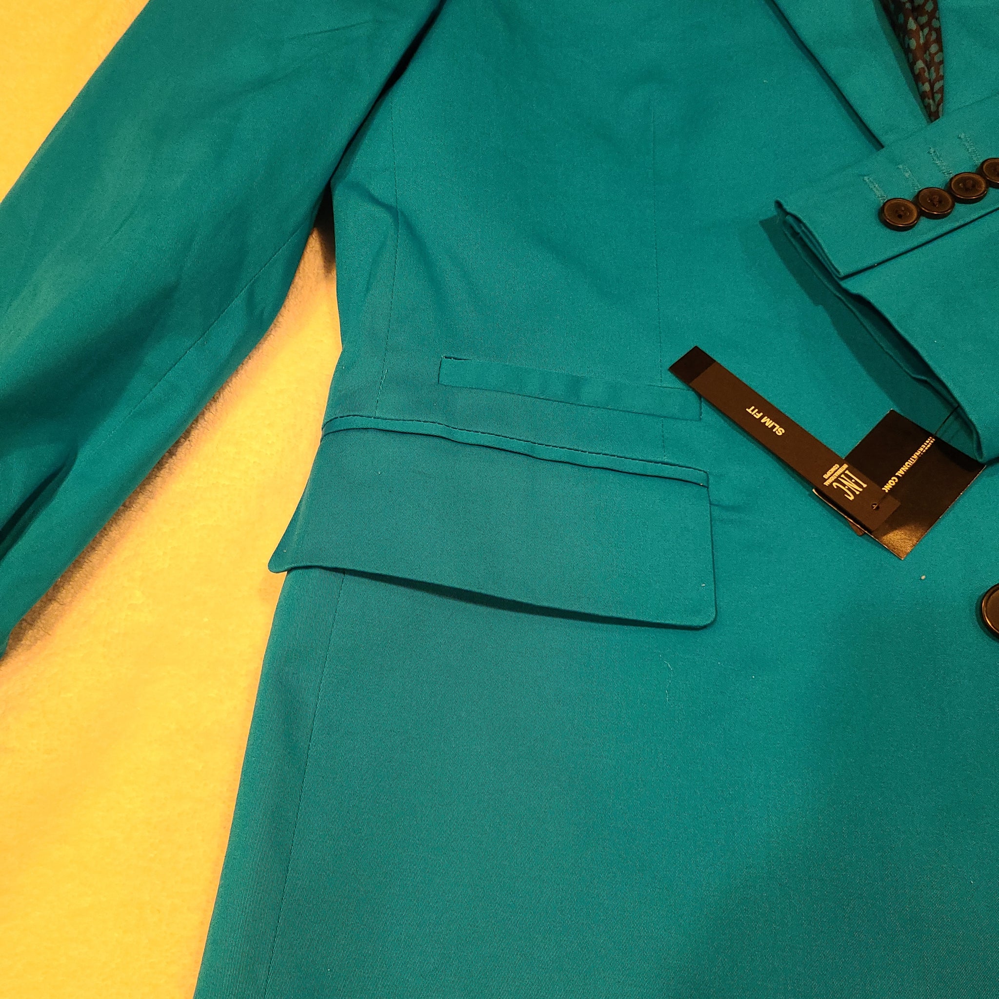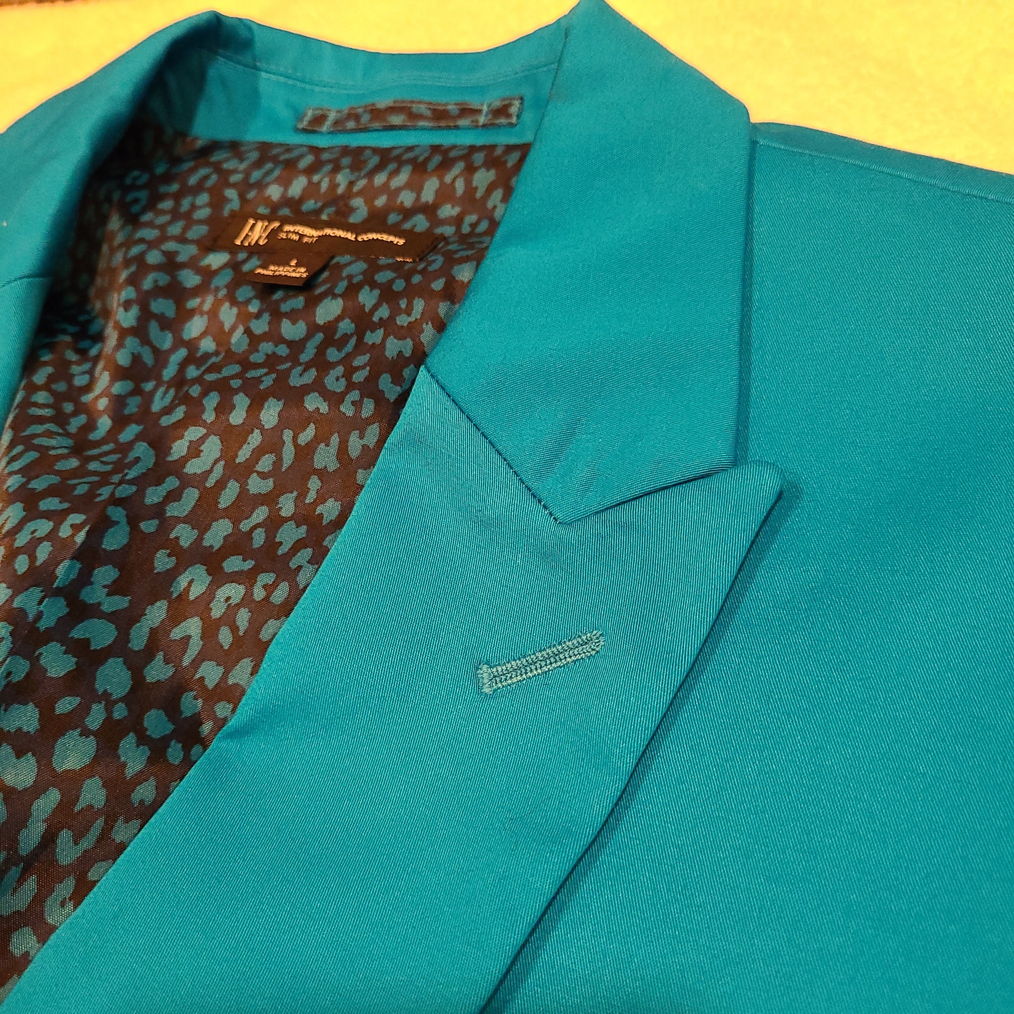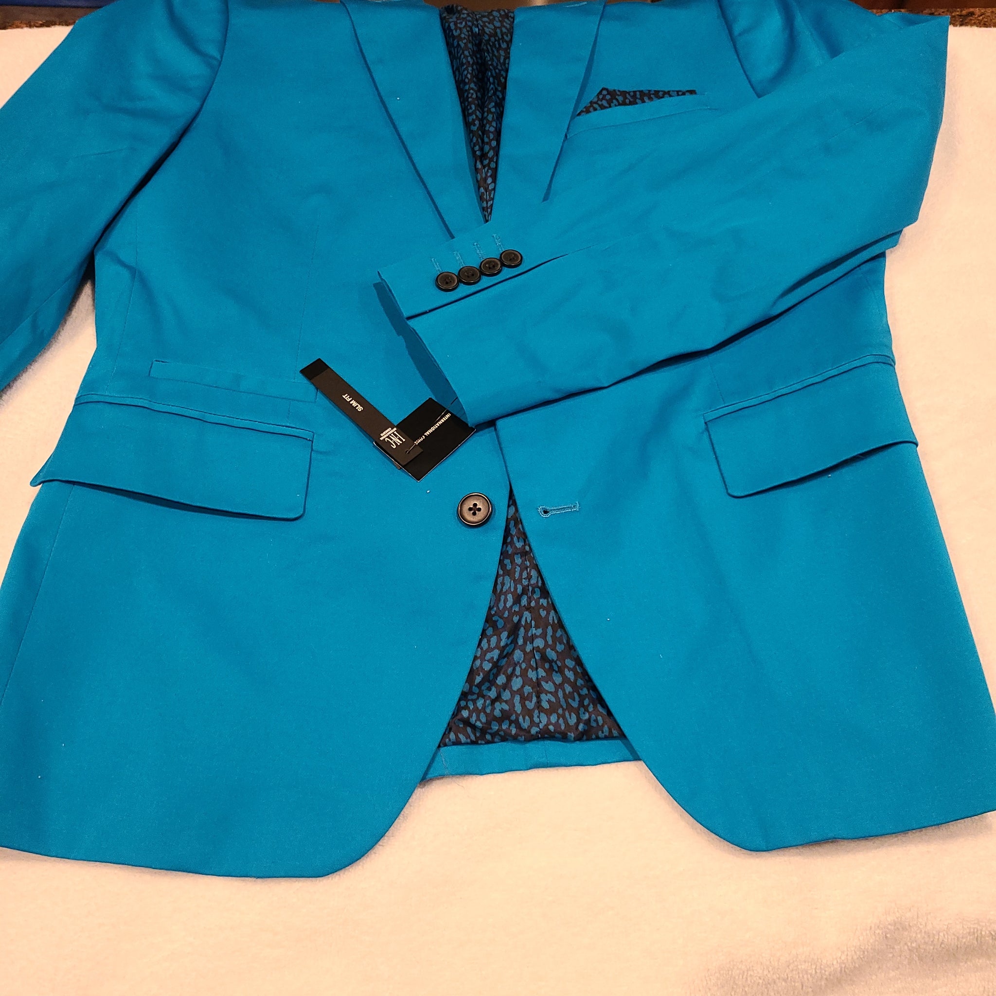 This beautiful vibrant, turquoise blue blazer by Inc International Concepts is a great addition to any man's wardrobe.